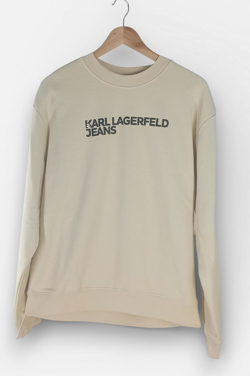 Un básico de marca que siempre suma: añade esta sudadera Karl Lagerfeld Jeans beige talla L, nueva con etiqueta, y tendrás una prenda cómoda, versátil y con estilo para todo el año.