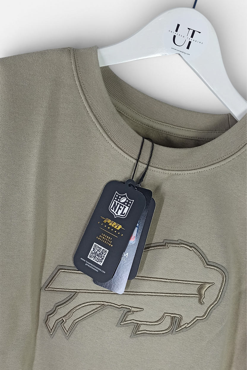 Si quieres una sudadera Buffalo Bills distinta, en beige y con acabado premium Pro Standard, esta crewneck es una apuesta segura: combina fácil, abriga y eleva cualquier outfit casual al instante.