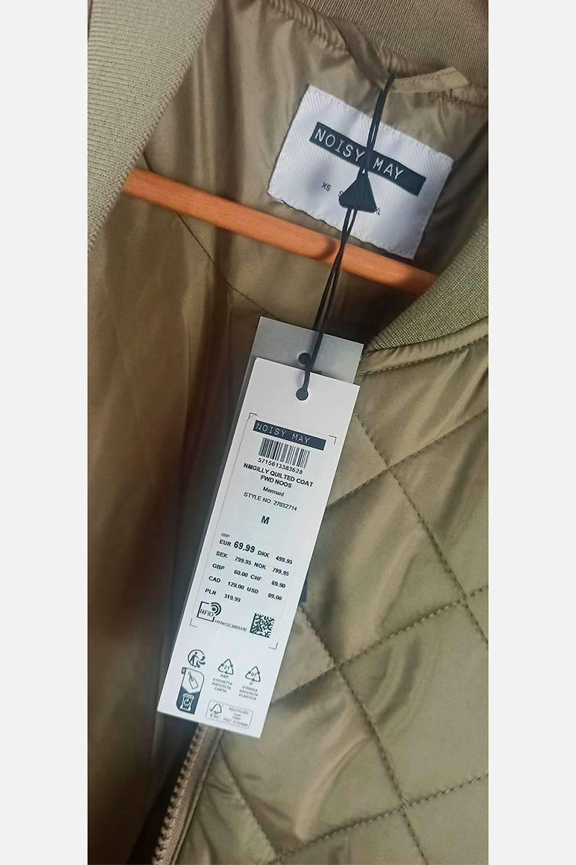 El abrigo está completamente nuevo y mantiene todas sus etiquetas de origen.