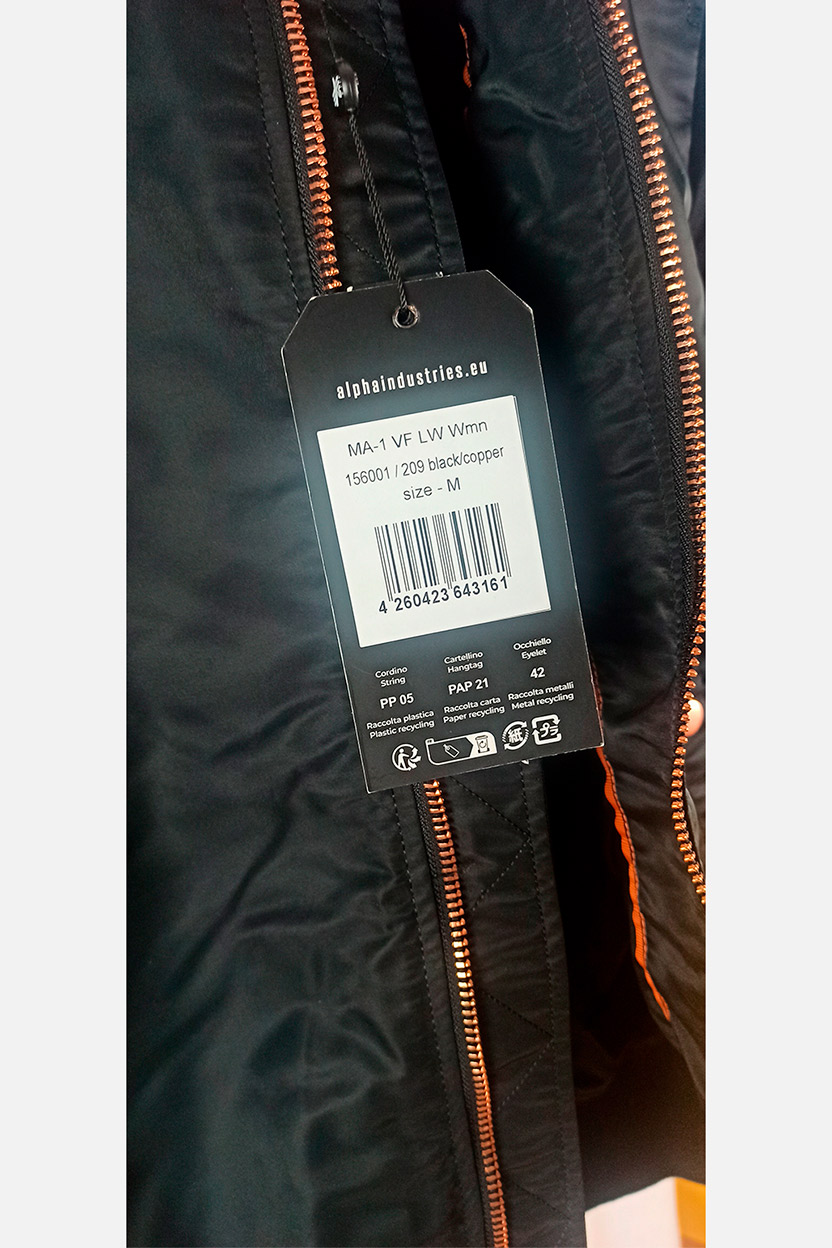 Chaqueta Bomber Alpha Industries MA-1 VF Light (Black/Copper 209) — Guía de tallas |
