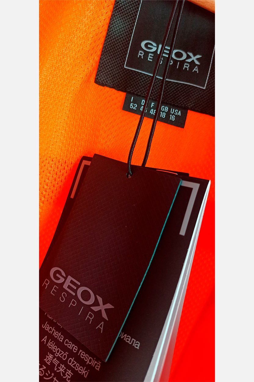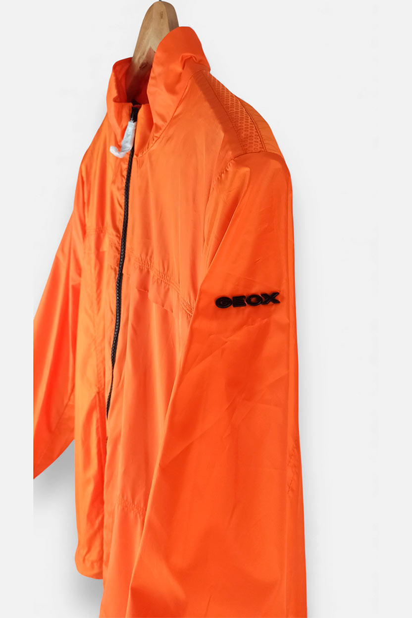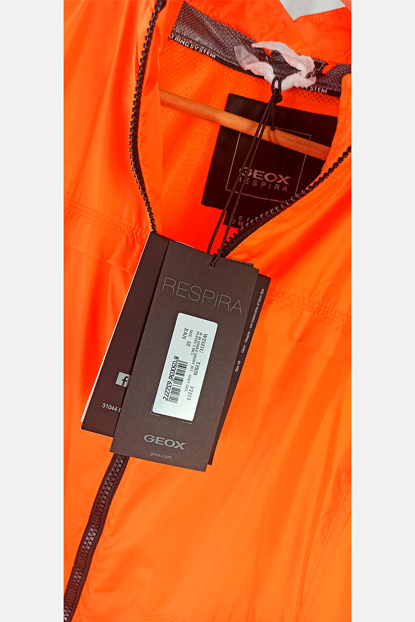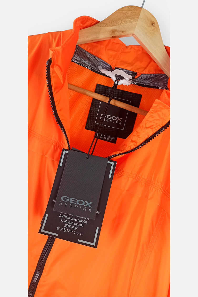 Ideal para quien busca una chaqueta ligera de mujer Geox en color naranja, cómoda, de calidad y con una talla amplia.