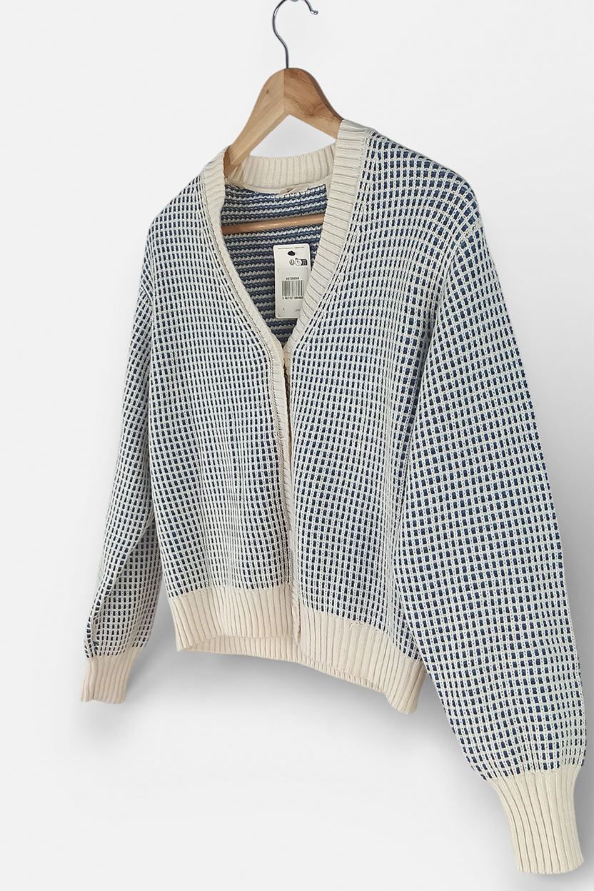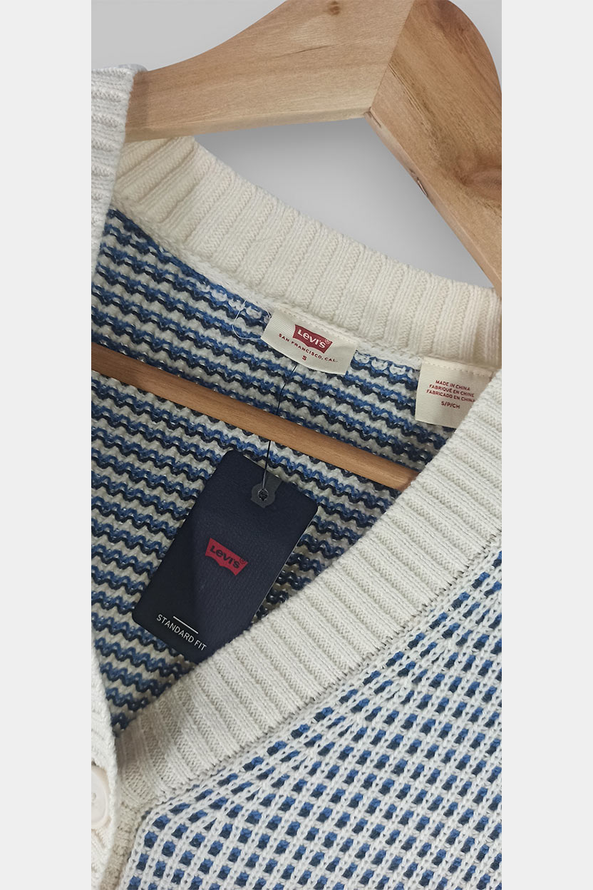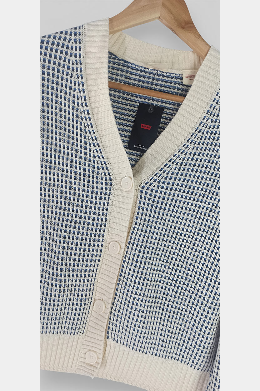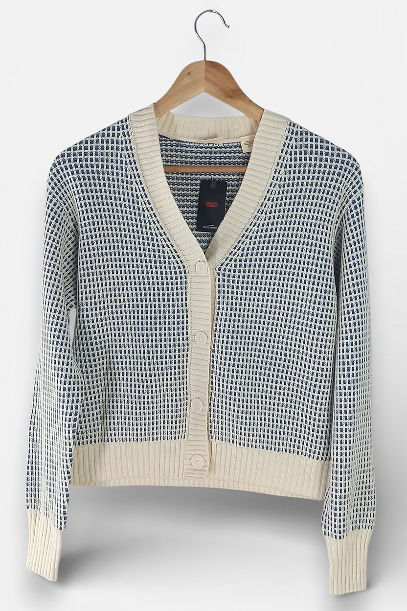 La típica prenda que te pones “para ir cómoda” y acabas viéndote súper estilosa. Este cárdigan Levi’s de punto mezcla tonos crema y azul con una textura preciosa, ideal para elevar tus looks diarios sin esfuerzo. Nuevo con etiqueta, listo para estrenar.